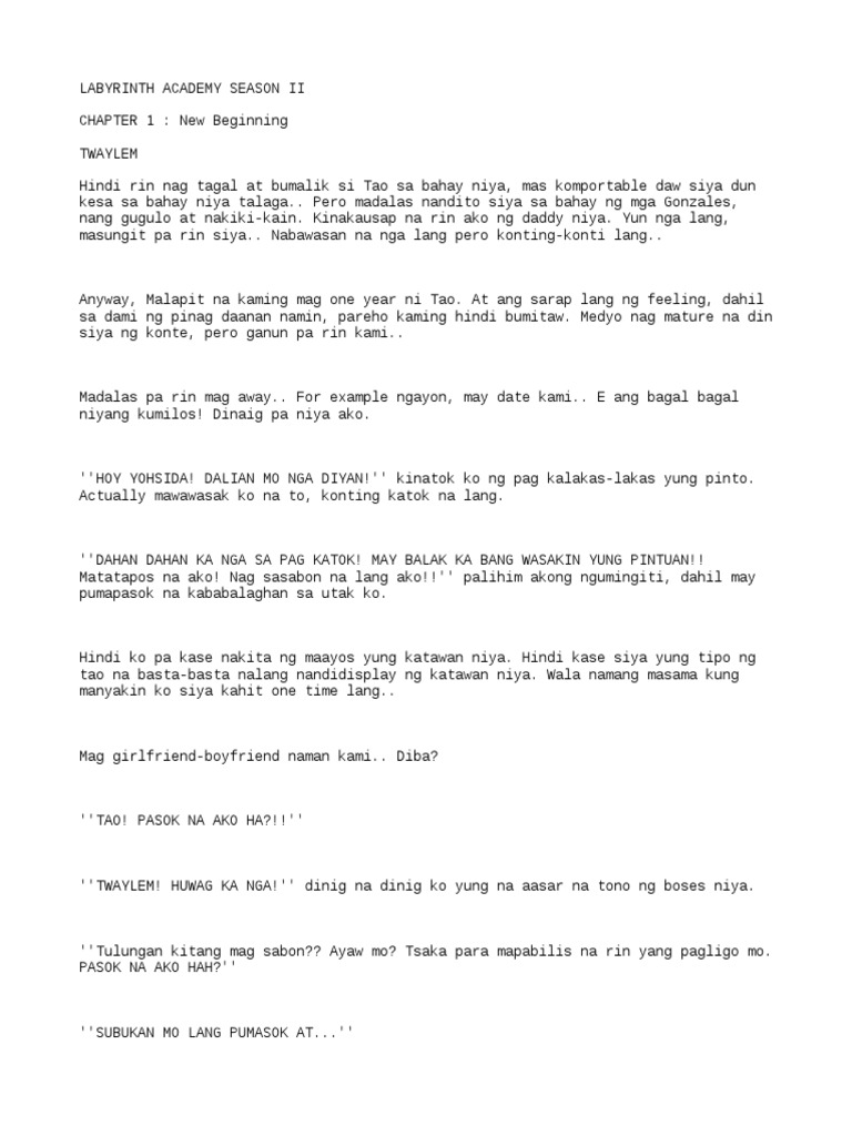 Kung ako ay isang walang kwentang manunulat english ang isusulat ko para kahit anu anu ang sabihin ko hindi na nila mahahalata. Ikalawa pangatlong sabak ko ito sa genre na Romantic-Comedy. Mahilig din akong magtatanong at gumawa ng mga walang kwentang bagay at mga walang kwentang trip.
